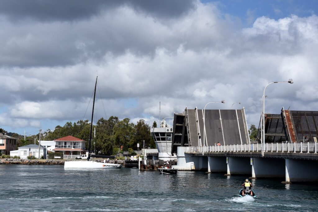 Following this, the hydraulic motors are activated to raise the bridge, ensuring a smooth and efficient process. Once the bridge is securely elevated, the pins are engaged once more, guaranteeing its stability and preventing any potential hazards to passing yachts. To facilitate the passage of boats entering or exiting Lake Macquarie, the traffic lights are adjusted accordingly.